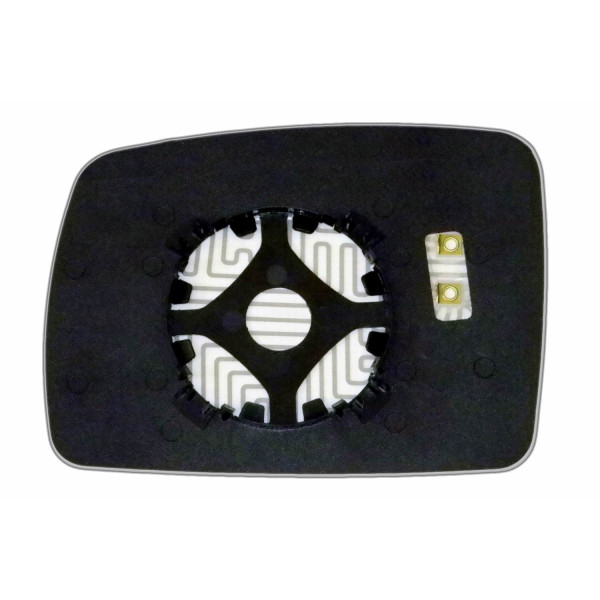 Змінний елемент автодзеркала асферичної форми, яка встановлюється в корпус дзеркала. Завдяки спеціальній випуклій геометрії поверхні водій отримує розширений кут огляду та ефективний контроль за ситуацією на дорозі в сліпих зонах. На світлині елемент дзеркала зі зворотної сторони.