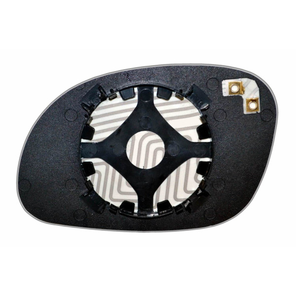 Змінний елемент автодзеркала асферичної форми, яка встановлюється в корпус дзеркала. Завдяки спеціальній випуклій геометрії поверхні водій отримує розширений кут огляду та ефективний контроль за ситуацією на дорозі в сліпих зонах. На світлині елемент дзеркала зі зворотної сторони.