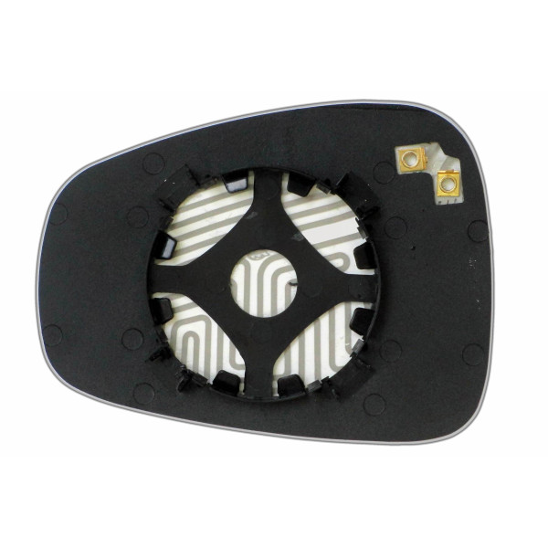 Змінний елемент автодзеркала асферичної форми, яка встановлюється в корпус дзеркала. Завдяки спеціальній випуклій геометрії поверхні водій отримує розширений кут огляду та ефективний контроль за ситуацією на дорозі в сліпих зонах. На світлині елемент дзеркала зі зворотної сторони.