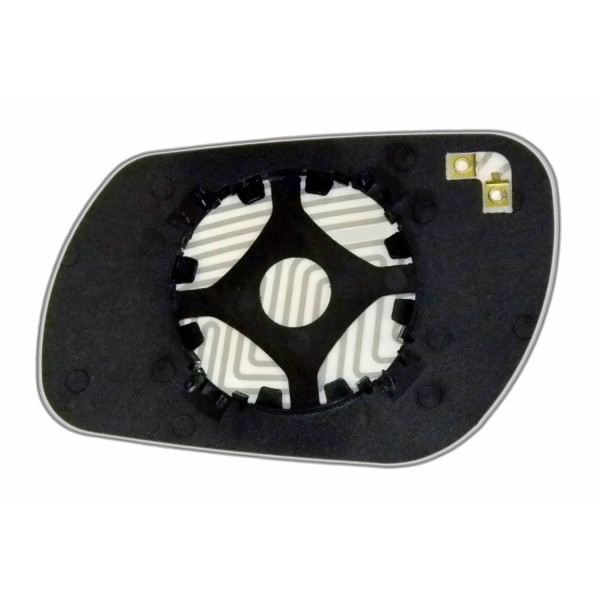 Змінний елемент автодзеркала асферичної форми, яка встановлюється в корпус дзеркала. Завдяки спеціальній випуклій геометрії поверхні водій отримує розширений кут огляду та ефективний контроль за ситуацією на дорозі в сліпих зонах. На світлині елемент дзеркала зі зворотної сторони.