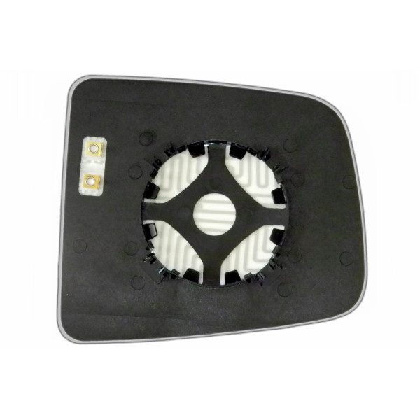 Змінний елемент автодзеркала асферичної форми, яка встановлюється в корпус дзеркала. Завдяки спеціальній випуклій геометрії поверхні водій отримує розширений кут огляду та ефективний контроль за ситуацією на дорозі в сліпих зонах. На світлині елемент дзеркала зі зворотної сторони.
