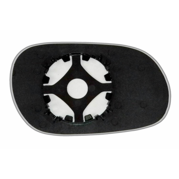 Змінний елемент автодзеркала асферичної форми, яка встановлюється в корпус дзеркала. Завдяки спеціальній випуклій геометрії поверхні водій отримує розширений кут огляду та ефективний контроль за ситуацією на дорозі в сліпих зонах. На світлині елемент дзеркала зі зворотної сторони.