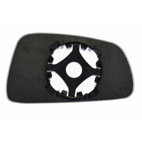 Змінний елемент автодзеркала асферичної форми, яка встановлюється в корпус дзеркала. Завдяки спеціальній випуклій геометрії поверхні водій отримує розширений кут огляду та ефективний контроль за ситуацією на дорозі в сліпих зонах. На світлині елемент дзеркала зі зворотної сторони.