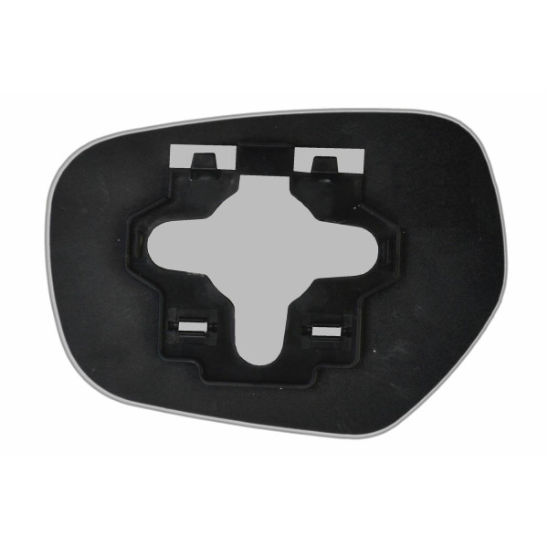 Змінний елемент автодзеркала асферичної форми, яка встановлюється в корпус дзеркала. Завдяки спеціальній випуклій геометрії поверхні водій отримує розширений кут огляду та ефективний контроль за ситуацією на дорозі в сліпих зонах. На світлині елемент дзеркала зі зворотної сторони.