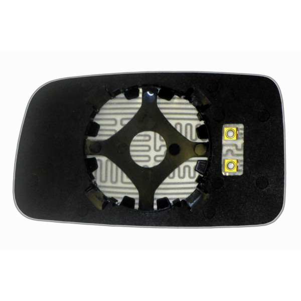 Змінний елемент автодзеркала асферичної форми, яка встановлюється в корпус дзеркала. Завдяки спеціальній випуклій геометрії поверхні водій отримує розширений кут огляду та ефективний контроль за ситуацією на дорозі в сліпих зонах. На світлині елемент дзеркала зі зворотної сторони.