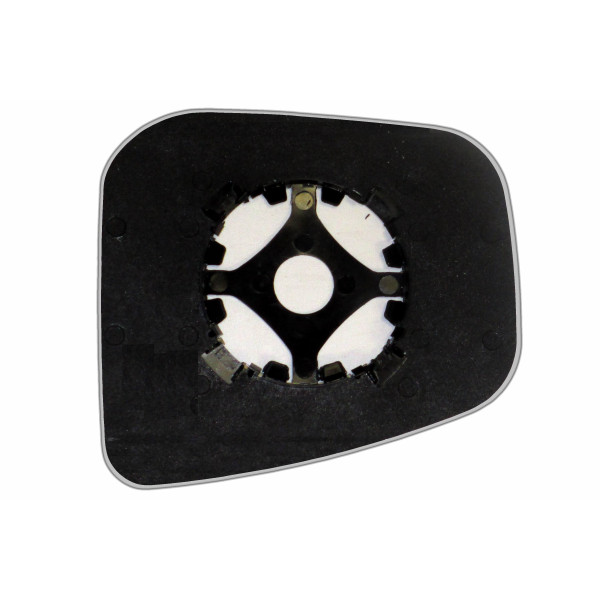 Змінний елемент автодзеркала асферичної форми, яка встановлюється в корпус дзеркала. Завдяки спеціальній випуклій геометрії поверхні водій отримує розширений кут огляду та ефективний контроль за ситуацією на дорозі в сліпих зонах. На світлині елемент дзеркала зі зворотної сторони.