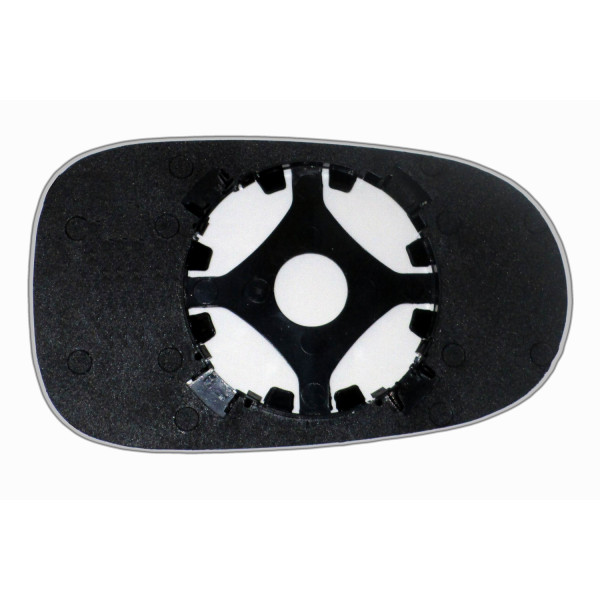 Змінний елемент автодзеркала асферичної форми, яка встановлюється в корпус дзеркала. Завдяки спеціальній випуклій геометрії поверхні водій отримує розширений кут огляду та ефективний контроль за ситуацією на дорозі в сліпих зонах. На світлині елемент дзеркала зі зворотної сторони.