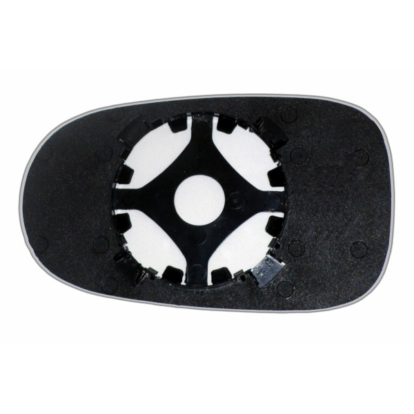 Змінний елемент автодзеркала асферичної форми, яка встановлюється в корпус дзеркала. Завдяки спеціальній випуклій геометрії поверхні водій отримує розширений кут огляду та ефективний контроль за ситуацією на дорозі в сліпих зонах. На світлині елемент дзеркала зі зворотної сторони.