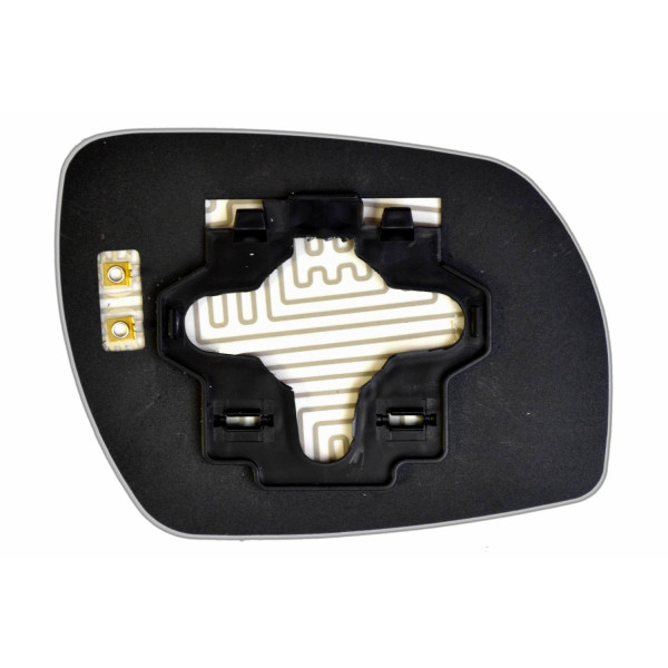 Змінний елемент автодзеркала асферичної форми, яка встановлюється в корпус дзеркала. Завдяки спеціальній випуклій геометрії поверхні водій отримує розширений кут огляду та ефективний контроль за ситуацією на дорозі в сліпих зонах. На світлині елемент дзеркала зі зворотної сторони.