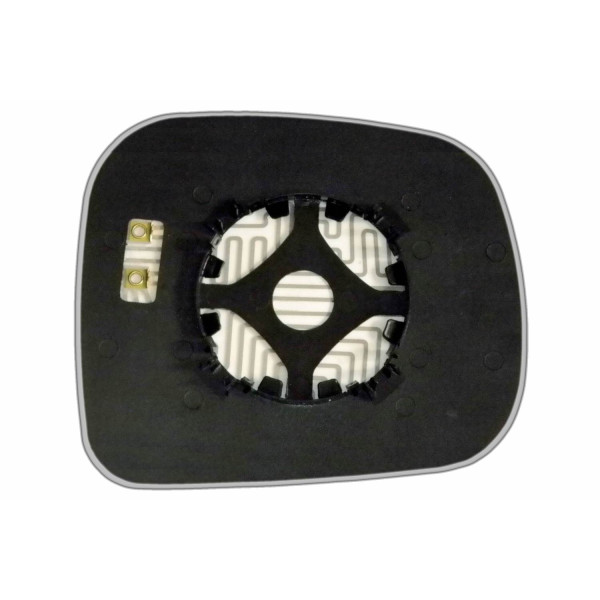 Змінний елемент автодзеркала асферичної форми, яка встановлюється в корпус дзеркала. Завдяки спеціальній випуклій геометрії поверхні водій отримує розширений кут огляду та ефективний контроль за ситуацією на дорозі в сліпих зонах. На світлині елемент дзеркала зі зворотної сторони.