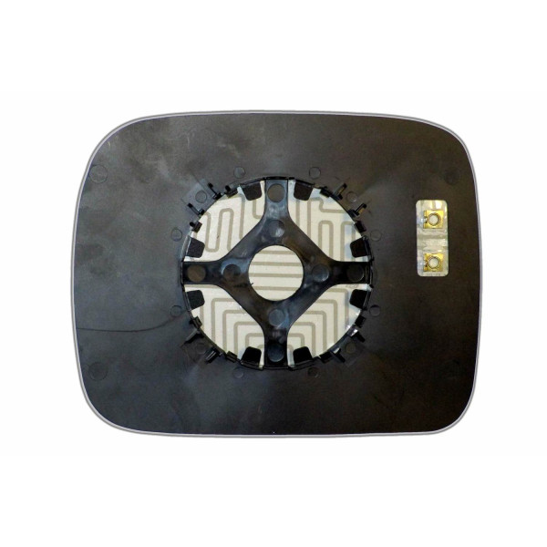 Змінний елемент автодзеркала асферичної форми, яка встановлюється в корпус дзеркала. Завдяки спеціальній випуклій геометрії поверхні водій отримує розширений кут огляду та ефективний контроль за ситуацією на дорозі в сліпих зонах. На світлині елемент дзеркала зі зворотної сторони.