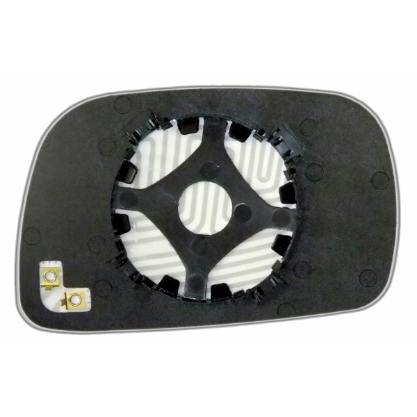 Змінний елемент автодзеркала асферичної форми, яка встановлюється в корпус дзеркала. Завдяки спеціальній випуклій геометрії поверхні водій отримує розширений кут огляду та ефективний контроль за ситуацією на дорозі в сліпих зонах. На світлині елемент дзеркала зі зворотної сторони.