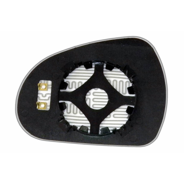 Змінний елемент автодзеркала асферичної форми, яка встановлюється в корпус дзеркала. Завдяки спеціальній випуклій геометрії поверхні водій отримує розширений кут огляду та ефективний контроль за ситуацією на дорозі в сліпих зонах. На світлині елемент дзеркала зі зворотної сторони.