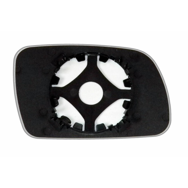 Змінний елемент автодзеркала асферичної форми, яка встановлюється в корпус дзеркала. Завдяки спеціальній випуклій геометрії поверхні водій отримує розширений кут огляду та ефективний контроль за ситуацією на дорозі в сліпих зонах. На світлині елемент дзеркала зі зворотної сторони.