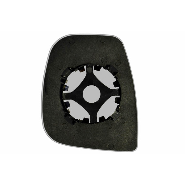 Змінний елемент автодзеркала асферичної форми, яка встановлюється в корпус дзеркала. Завдяки спеціальній випуклій геометрії поверхні водій отримує розширений кут огляду та ефективний контроль за ситуацією на дорозі в сліпих зонах. На світлині елемент дзеркала зі зворотної сторони.