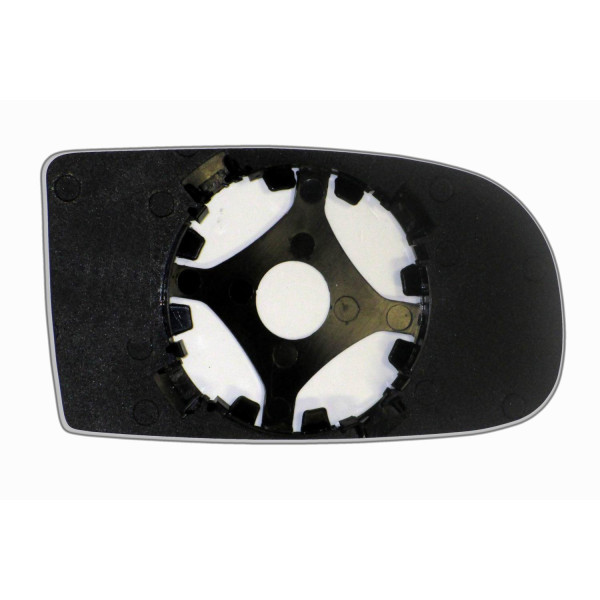 Змінний елемент автодзеркала асферичної форми, яка встановлюється в корпус дзеркала. Завдяки спеціальній випуклій геометрії поверхні водій отримує розширений кут огляду та ефективний контроль за ситуацією на дорозі в сліпих зонах. На світлині елемент дзеркала зі зворотної сторони.