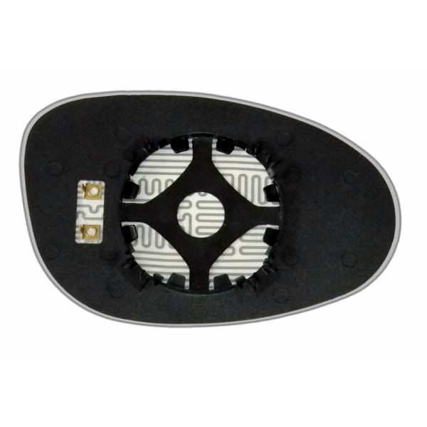 Змінний елемент автодзеркала асферичної форми, яка встановлюється в корпус дзеркала. Завдяки спеціальній випуклій геометрії поверхні водій отримує розширений кут огляду та ефективний контроль за ситуацією на дорозі в сліпих зонах. На світлині елемент дзеркала зі зворотної сторони.