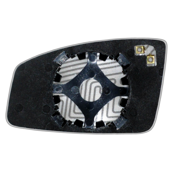 Змінний елемент автодзеркала асферичної форми, яка встановлюється в корпус дзеркала. Завдяки спеціальній випуклій геометрії поверхні водій отримує розширений кут огляду та ефективний контроль за ситуацією на дорозі в сліпих зонах. На світлині елемент дзеркала зі зворотної сторони.