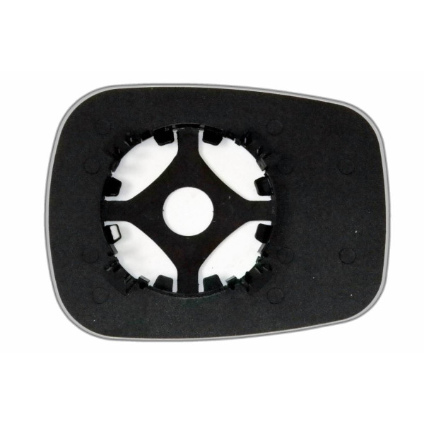 Змінний елемент автодзеркала асферичної форми, яка встановлюється в корпус дзеркала. Завдяки спеціальній випуклій геометрії поверхні водій отримує розширений кут огляду та ефективний контроль за ситуацією на дорозі в сліпих зонах. На світлині елемент дзеркала зі зворотної сторони.