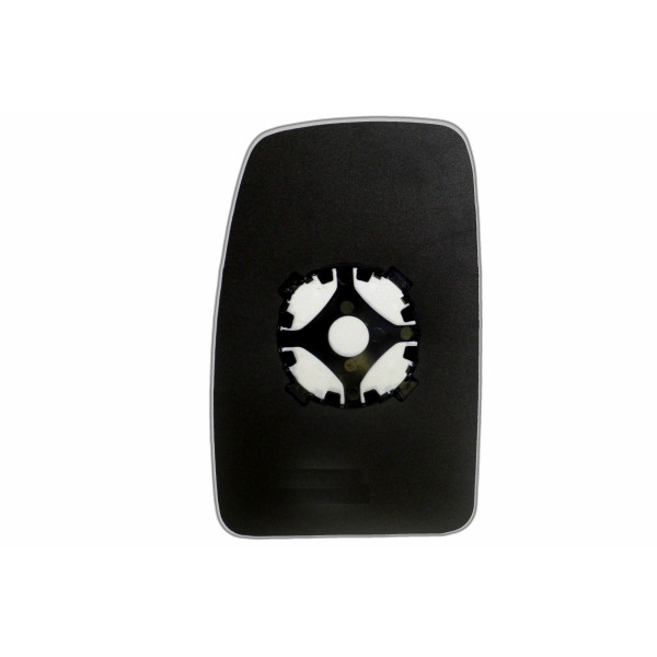 Змінний елемент автодзеркала асферичної форми, яка встановлюється в корпус дзеркала. Завдяки спеціальній випуклій геометрії поверхні водій отримує розширений кут огляду та ефективний контроль за ситуацією на дорозі в сліпих зонах. На світлині елемент дзеркала зі зворотної сторони.