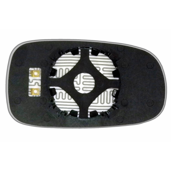Змінний елемент автодзеркала асферичної форми, яка встановлюється в корпус дзеркала. Завдяки спеціальній випуклій геометрії поверхні водій отримує розширений кут огляду та ефективний контроль за ситуацією на дорозі в сліпих зонах. На світлині елемент дзеркала зі зворотної сторони.