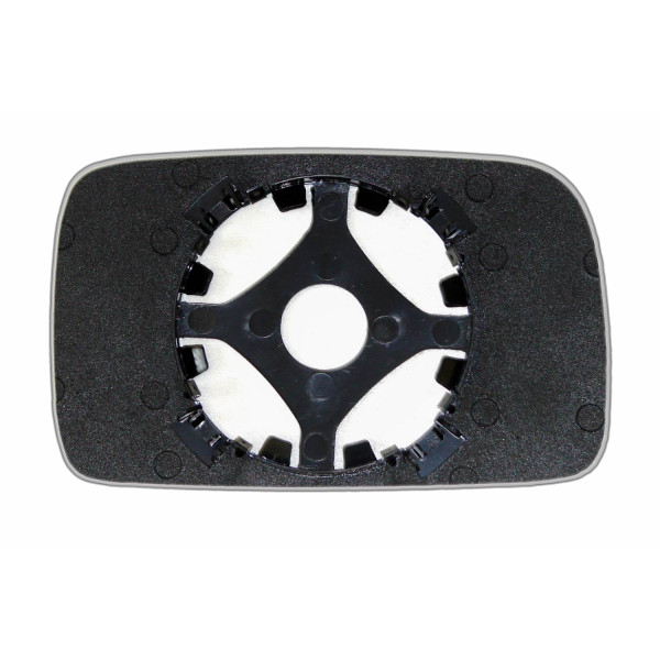 Змінний елемент автодзеркала асферичної форми, яка встановлюється в корпус дзеркала. Завдяки спеціальній випуклій геометрії поверхні водій отримує розширений кут огляду та ефективний контроль за ситуацією на дорозі в сліпих зонах. На світлині елемент дзеркала зі зворотної сторони.