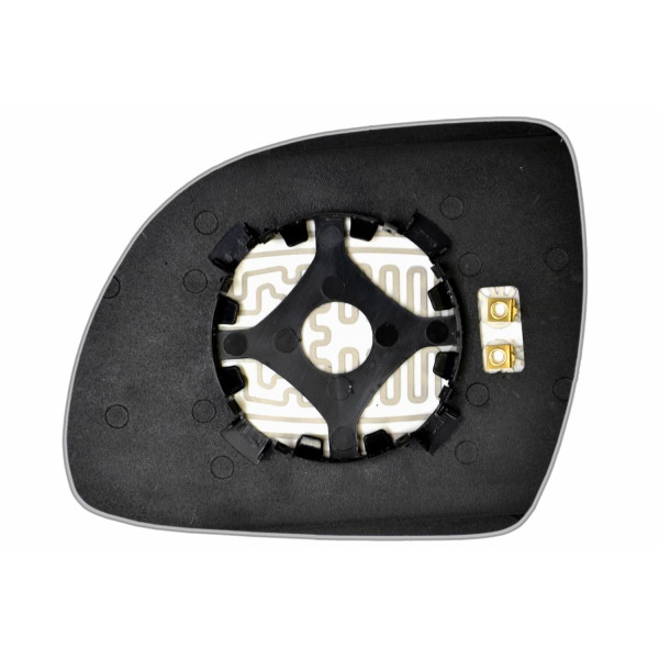 Змінний елемент автодзеркала асферичної форми, яка встановлюється в корпус дзеркала. Завдяки спеціальній випуклій геометрії поверхні водій отримує розширений кут огляду та ефективний контроль за ситуацією на дорозі в сліпих зонах. На світлині елемент дзеркала зі зворотної сторони.