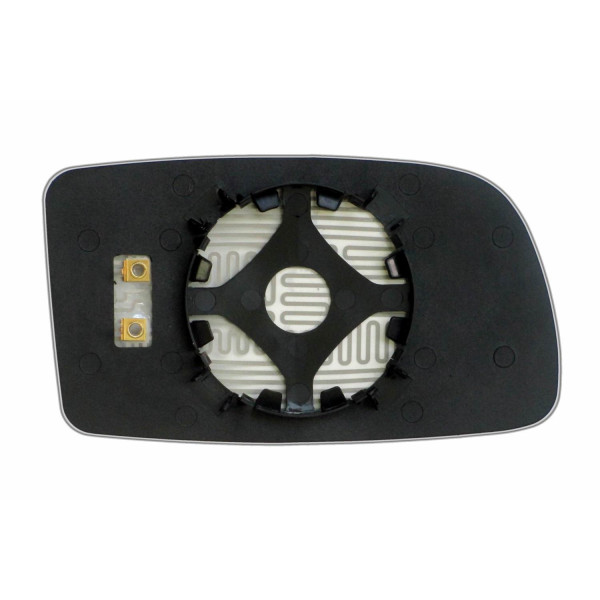 Змінний елемент автодзеркала асферичної форми, яка встановлюється в корпус дзеркала. Завдяки спеціальній випуклій геометрії поверхні водій отримує розширений кут огляду та ефективний контроль за ситуацією на дорозі в сліпих зонах. На світлині елемент дзеркала зі зворотної сторони.