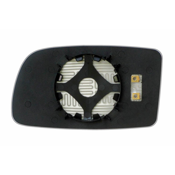 Змінний елемент автодзеркала асферичної форми, яка встановлюється в корпус дзеркала. Завдяки спеціальній випуклій геометрії поверхні водій отримує розширений кут огляду та ефективний контроль за ситуацією на дорозі в сліпих зонах. На світлині елемент дзеркала зі зворотної сторони.