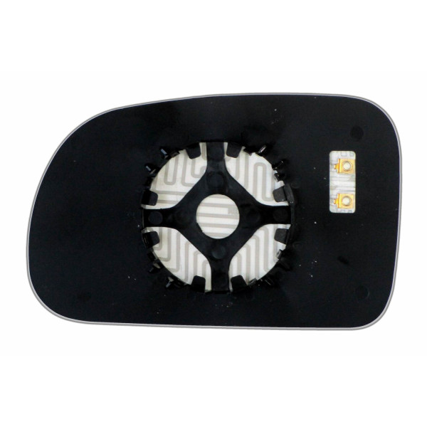 Змінний елемент автодзеркала асферичної форми, яка встановлюється в корпус дзеркала. Завдяки спеціальній випуклій геометрії поверхні водій отримує розширений кут огляду та ефективний контроль за ситуацією на дорозі в сліпих зонах. На світлині елемент дзеркала зі зворотної сторони.