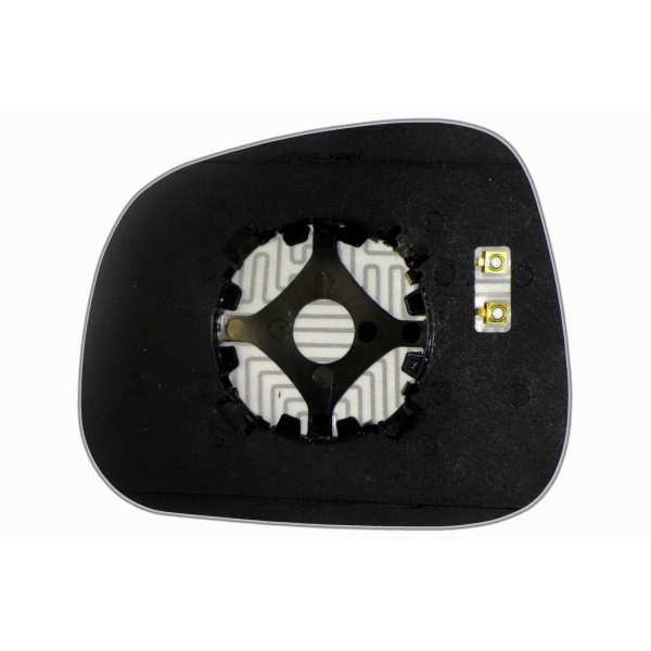 Змінний елемент автодзеркала асферичної форми, яка встановлюється в корпус дзеркала. Завдяки спеціальній випуклій геометрії поверхні водій отримує розширений кут огляду та ефективний контроль за ситуацією на дорозі в сліпих зонах. На світлині елемент дзеркала зі зворотної сторони.