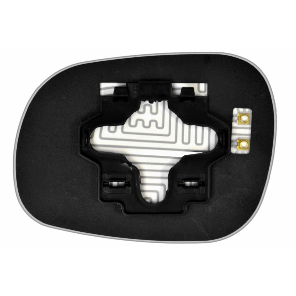 Змінний елемент автодзеркала асферичної форми, яка встановлюється в корпус дзеркала. Завдяки спеціальній випуклій геометрії поверхні водій отримує розширений кут огляду та ефективний контроль за ситуацією на дорозі в сліпих зонах. На світлині елемент дзеркала зі зворотної сторони.