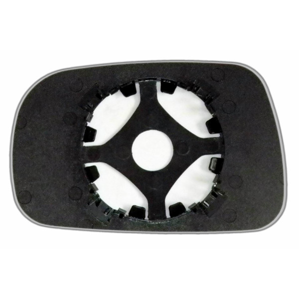 Змінний елемент автодзеркала асферичної форми, яка встановлюється в корпус дзеркала. Завдяки спеціальній випуклій геометрії поверхні водій отримує розширений кут огляду та ефективний контроль за ситуацією на дорозі в сліпих зонах. На світлині елемент дзеркала зі зворотної сторони.