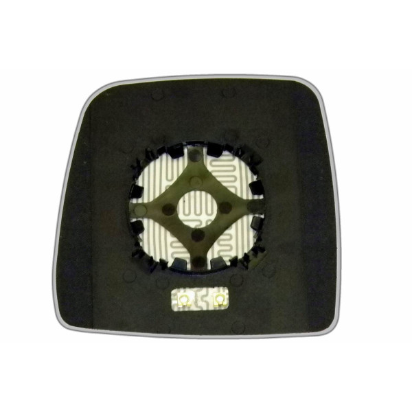 Змінний елемент автодзеркала асферичної форми, яка встановлюється в корпус дзеркала. Завдяки спеціальній випуклій геометрії поверхні водій отримує розширений кут огляду та ефективний контроль за ситуацією на дорозі в сліпих зонах. На світлині елемент дзеркала зі зворотної сторони.