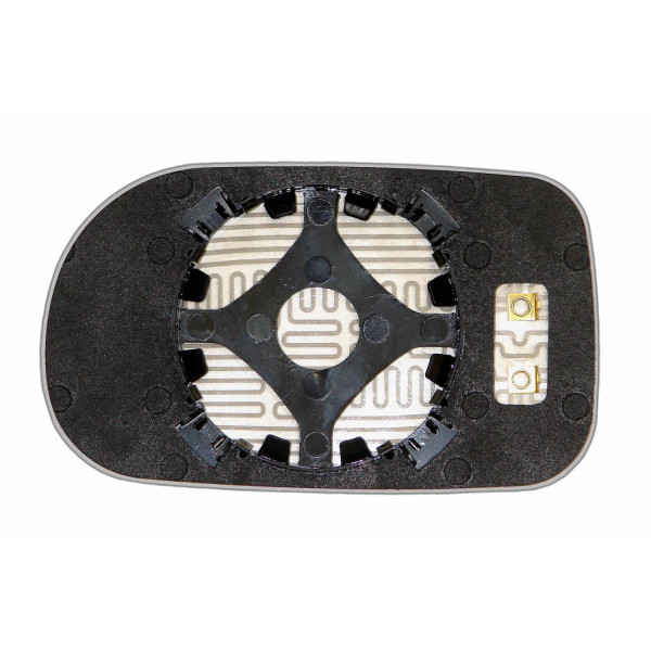 Змінний елемент автодзеркала асферичної форми, яка встановлюється в корпус дзеркала. Завдяки спеціальній випуклій геометрії поверхні водій отримує розширений кут огляду та ефективний контроль за ситуацією на дорозі в сліпих зонах. На світлині елемент дзеркала зі зворотної сторони.