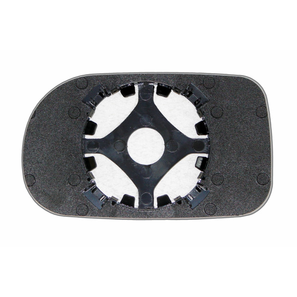 Змінний елемент автодзеркала асферичної форми, яка встановлюється в корпус дзеркала. Завдяки спеціальній випуклій геометрії поверхні водій отримує розширений кут огляду та ефективний контроль за ситуацією на дорозі в сліпих зонах. На світлині елемент дзеркала зі зворотної сторони.
