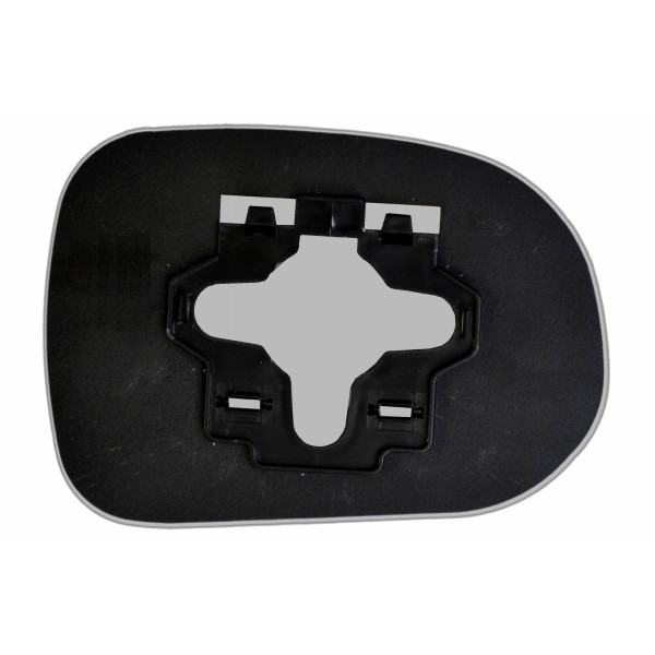 Змінний елемент автодзеркала асферичної форми, яка встановлюється в корпус дзеркала. Завдяки спеціальній випуклій геометрії поверхні водій отримує розширений кут огляду та ефективний контроль за ситуацією на дорозі в сліпих зонах. На світлині елемент дзеркала зі зворотної сторони.
