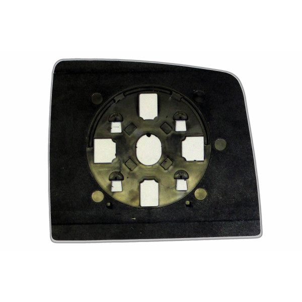 Змінний елемент автодзеркала асферичної форми, яка встановлюється в корпус дзеркала. Завдяки спеціальній випуклій геометрії поверхні водій отримує розширений кут огляду та ефективний контроль за ситуацією на дорозі в сліпих зонах. На світлині елемент дзеркала зі зворотної сторони.