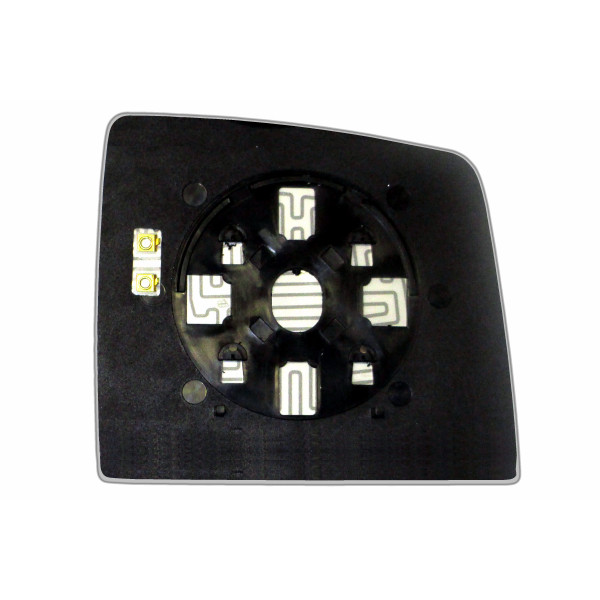 Змінний елемент автодзеркала асферичної форми, яка встановлюється в корпус дзеркала. Завдяки спеціальній випуклій геометрії поверхні водій отримує розширений кут огляду та ефективний контроль за ситуацією на дорозі в сліпих зонах. На світлині елемент дзеркала зі зворотної сторони.
