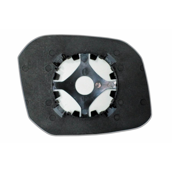 Змінний елемент автодзеркала асферичної форми, яка встановлюється в корпус дзеркала. Завдяки спеціальній випуклій геометрії поверхні водій отримує розширений кут огляду та ефективний контроль за ситуацією на дорозі в сліпих зонах. На світлині елемент дзеркала зі зворотної сторони.