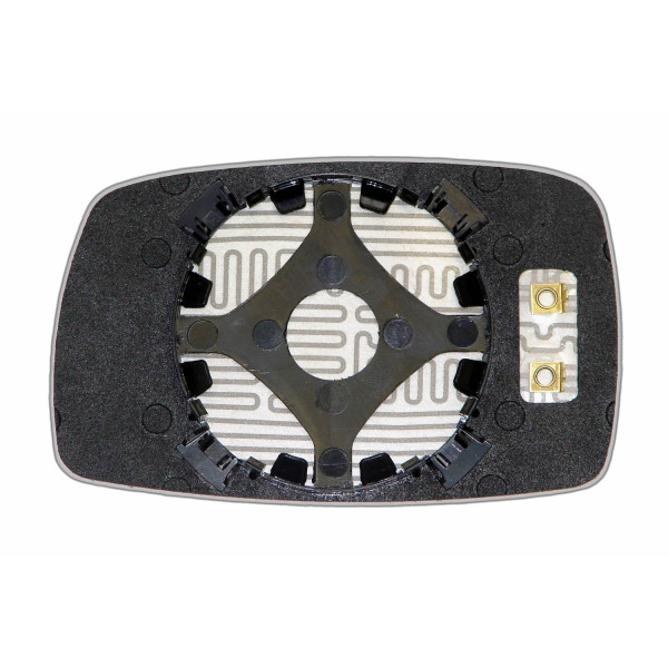 Змінний елемент автодзеркала асферичної форми, яка встановлюється в корпус дзеркала. Завдяки спеціальній випуклій геометрії поверхні водій отримує розширений кут огляду та ефективний контроль за ситуацією на дорозі в сліпих зонах. На світлині елемент дзеркала зі зворотної сторони.