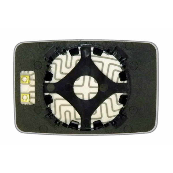 Змінний елемент автодзеркала асферичної форми, яка встановлюється в корпус дзеркала. Завдяки спеціальній випуклій геометрії поверхні водій отримує розширений кут огляду та ефективний контроль за ситуацією на дорозі в сліпих зонах. На світлині елемент дзеркала зі зворотної сторони.