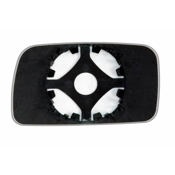 Змінний елемент автодзеркала асферичної форми, яка встановлюється в корпус дзеркала. Завдяки спеціальній випуклій геометрії поверхні водій отримує розширений кут огляду та ефективний контроль за ситуацією на дорозі в сліпих зонах. На світлині елемент дзеркала зі зворотної сторони.