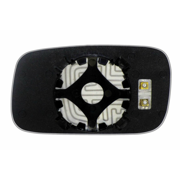 Змінний елемент автодзеркала асферичної форми, яка встановлюється в корпус дзеркала. Завдяки спеціальній випуклій геометрії поверхні водій отримує розширений кут огляду та ефективний контроль за ситуацією на дорозі в сліпих зонах. На світлині елемент дзеркала зі зворотної сторони.