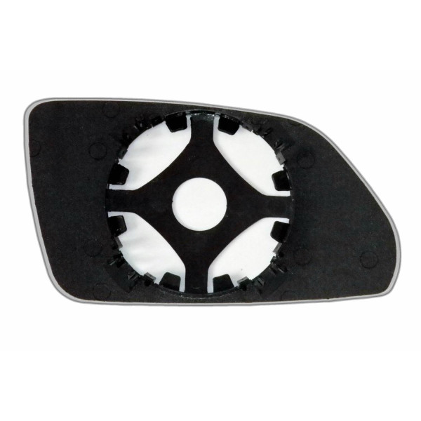 Змінний елемент автодзеркала асферичної форми, яка встановлюється в корпус дзеркала. Завдяки спеціальній випуклій геометрії поверхні водій отримує розширений кут огляду та ефективний контроль за ситуацією на дорозі в сліпих зонах. На світлині елемент дзеркала зі зворотної сторони.