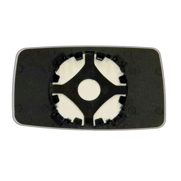 Змінний елемент автодзеркала асферичної форми, яка встановлюється в корпус дзеркала. Завдяки спеціальній випуклій геометрії поверхні водій отримує розширений кут огляду та ефективний контроль за ситуацією на дорозі в сліпих зонах. На світлині елемент дзеркала зі зворотної сторони.