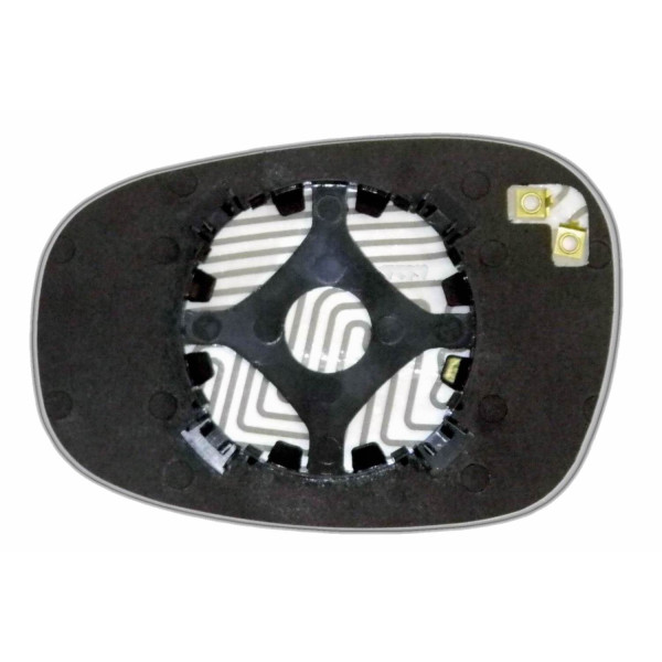 Сменный элемент зеркала сферической формы, которое устанавливается в корпус наружного зеркала. Благодаря специальной выпуклой геометрии поверхности элемента зеркала водитель получает расширенный угол обзора и эффективный контроль за дорожной ситуацией в слепых зонах. На изображении элемент зеркала с обратной стороны.