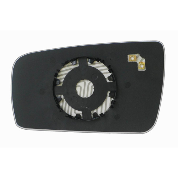Сменный элемент зеркала асферической формы, которое устанавливается в корпус наружного зеркала. Благодаря специальной более выпуклой геометрии поверхности элемента зеркала водитель получает расширенный угол обзора и эффективный контроль за дорожной ситуацией в слепых зонах. На изображении элемент зеркала с обратной стороны.