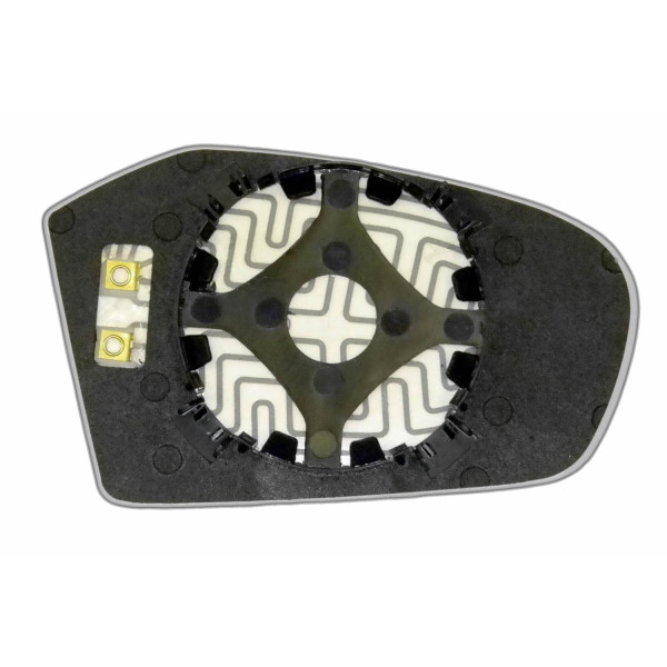 Сменный элемент зеркала сферической формы, которое устанавливается в корпус наружного зеркала. Благодаря специальной выпуклой геометрии поверхности элемента зеркала водитель получает расширенный угол обзора и эффективный контроль за дорожной ситуацией в слепых зонах. На изображении элемент зеркала с обратной стороны.