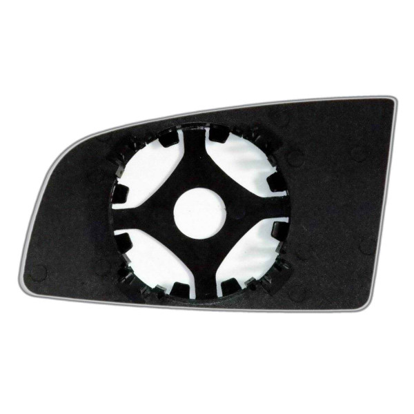 Сменный элемент зеркала сферической формы, которое устанавливается в корпус наружного зеркала. Благодаря специальной выпуклой геометрии поверхности элемента зеркала водитель получает расширенный угол обзора и эффективный контроль за дорожной ситуацией в слепых зонах. На изображении элемент зеркала с обратной стороны.